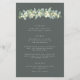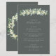 En mörk grågrön, treradig meny för bröllop, med en girland av handmålade snöbär och eukalyptus på framsidan och en krans på baksidan. All text är helt redigerbar, och de spridda prickarna på fram- och baksidan kan raderas innan beställning om du föredrar det. Vänligen se denna kollektion i min butik för menyer med alternativa blomsterarrangemang, ett annat antal rätter och i olika storlekar/färger/ former. Koordinerande artiklar finns också tillgängliga.