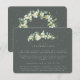 Ett mörkt grågrönt platt vigselkuvert för all din vigselinformation: online-svar/RSVP, boende, reseinformation, gåvoregisterdetaljer, bröllopswebbplats med mera. Med en elegant stjälk av handmålade snöbär och eukalyptus på framsidan och en krans på baksidan av kortet. All text är helt redigerbar och de spridda prickarna på fram- och baksidan kan raderas innan beställning om du föredrar det. Detta kort finns tillgängligt med alternativa botaniska mönster, i stående format och i olika färger. Vänligen se kollektionen i min butik för att se alla alternativ och matchande artiklar.