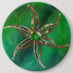 Ett abstrakt verk i ljust grönt och koppar. En klar grön ädelsten omges av kopparkantade grässtrån accentuerade med gnistrande smaragder och orange stjärnexplosioner. De vågiga, böjda fraktalerna i bakgrunden framträder i djupare grönt, brunt och orange innanför kopparfiligranen i bladmotivet.