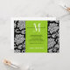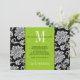 Grön Svart Monogram Damast Bröllop Spara Datum Inbjudningar