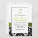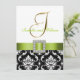 Grön Svart Vit Damask Första Bokstaven Bröllopsinb Inbjudningar
