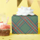 Semestra slå in papper som presenterar den gröna tartanplädet i en diagonal riktning.