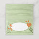Lägg till en touch av lekfull charm på din bröllopsfest eller trädgårds firande med dessa fantasifulla vikta platskort. Designade med ett handmålat trädgårdstema i mjuka gröna toner och livfulla orange blommor, ger de en romantisk vintage boho-känsla till din fest. Den känsliga handritade ramen lägger till en konstnärlig, saga-liknande detalj, vilket gör varje kort verkligt speciellt.