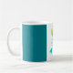 Grön uggla med blåttgränsmuggen kaffemugg