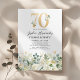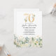 Sätt tonen för en minnesvärd milstolpsfirande med våra 70-årsfirande-inbjudningar. Med rustik grön lövverk, eleganta vita akvarellblommor och guldaccent. Kombinerat med en chic textmall för sjuttioårsfirande som du kan anpassa, är dessa inbjudningar en perfekt blandning av elegans och charm. Gör dig redo för den ultimata 70-årsfesten!