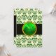 GRÖN VIT DAMASK MED SHAMROCK Svart Silver Inbjudningar