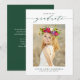 Meddela din examen till familj och vänner med detta anpassningsbara examens kort för årskullen 2022. Det har grön whimsical kalligrafi och klassisk typografi. Anpassa detta enkla examens meddelande kort genom att lägga till ditt foto, namn och skola namn. Detta script foto examens meddelande kort är perfekt för både gymnasiet och universitetsexamen.