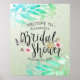 Gröna akvarellblad Chic bröllopsfest välkommen Poster