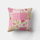 En kudde för lärare som presenterar en illustration av ett grönt äpple som dekoreras med en rosa hjärta- och vittext "LÄRARE.", Bakgrund är patchworken inspirerad design som består av polka, pricker flickaktigt, paisley, randar, sicksacken, blommigten och ginghammönster.