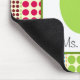 En mousepad som presenterar en illustration av en grön äppleinsida som en vit kvadrerar med gröntklippning. Personifiera med ditt namn under äpplet. Bakgrund är ror av polka dots i olikt storleksanpassar och färgar. Sök efter att matcha objekt på den rosa schoolhousen.