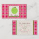 En lärarevisitkort som presenterar en illustration av en grön äppleinsida som en kvadrera med gröntklippning beklär på. Bakgrund beklär på, och tillbaka är den rosa plädet. Personifiera texten beklär och drar tillbaka på.