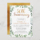 Gröna blad Guld Kalligrafi 50-års bröllopsjubileum Inbjudningar