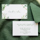 Kortet har vackra gröna blad i en akvarellstil med en guldkopparkant i varje hörn av bröllopets detaljerade infogningskort.