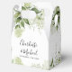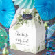 Elegant bröllopspresentförpackning med gröna blad, chic signatur skriptnamn och speciellt datum. Du kan anpassa med ditt eget tackmeddelande på baksidan. Ett perfekt sätt att tacka dina gäster! Designad av Thisisnotme©