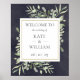 Med ömtåliga akvarellblad på en gammal svart tavla bakgrund. Denna snygga välkomstskylt kan anpassas med din speciella bröllopsdagsinformation. Designad av Thisisnotme