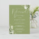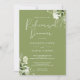 Elegant blomstergrönska mossgrön övningsmiddagsinbjudan med era namn och detaljer om middagen i elegant text och era initialer på baksidan. Designad av Thisisnotme©