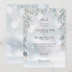 Vackra blomster gröna vilda blommor ramar in er speciella vinterbröllopsfirande detaljer i elegant guldtypografi på denna eleganta bröllopsinbjudan. Designad av Thisisnotme©