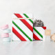 Randar av ljus rött och grönt på en vitbakgrund som slår in papper, på diagonalen för en candy cane, verkställer