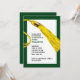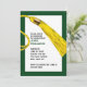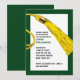 Modern examensinbjudan mall med unik guldexamenskåpa på grön bakgrund.
