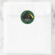 Kreativa presentsticker för examensfest eller evenemang, partyfavorsetiketter och kuvertförslutningar för studenter som tar examen '25 med rolig text och klassisk examenshatt med guldrand på grön bakgrund.