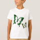 Två gröna fjärilar som flitting runt om t-skjortan.