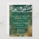 En rikligt färgad grön bröllopsjubileumsfest inbjudan med en guld falskt metallisk distressed bakgrund med festliga hängande ljus. Perfekt för stora jubileer som 5:e, 10:e, 15:e, 20:e, 25:e, 30:e, 35:e, 40:e, 45:e, 50:e, 55:e, 60:e ...eller vilket år som helst!