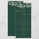Elegant smaragdgrön och guld bröllopsmenykort med vackra strängljus och signatur stilnamn. Detta moderna menykort kan anpassas med din information i chic guld bokstäver. Designad av Thisisnotme©