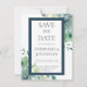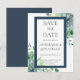 Gröna & Indigo Sukkulenter Vita Blommor Bröllop Inbjudningar