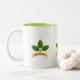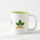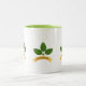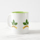 Moderna vackra gröna lagerblad och gyllene band på vit mugg. Texten kan anpassas.
