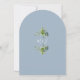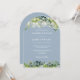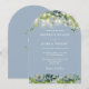 Dessa eleganta eukalyptusgröna botaniska strängljus med dammig blå bröllopsinbjudan kan anpassas med din information i chic typografi med din monogram på baksidan. Designad av Thisisnotme