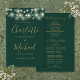 Emeraldgrönt och guld signaturskript bröllopsprogram med vackra strängljus och chic modern typografi. Detta stilrena bröllopsprogram kan anpassas med din speciella bröllopsdagsinformation. Designad av Thisisnotme
