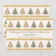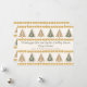 Jul- och högtidshelsning med rader av granar i grönt och guld med mindre rader av hjärtan emellan.