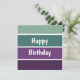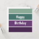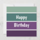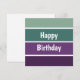 Ett grönt och lila horisontellt randigt mönster och texten: Grattis på födelsedagen. Du kan klicka på anpassa och redigera texten. Skriv två ord per rad.