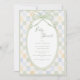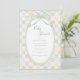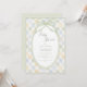 Grön, blå och gul rutig bakgrund med ovala ramar i två nyanser. En söt och unik design för alla baby shower. Vackra samordnade typsnitt. Absolut förtjusande.