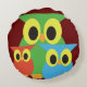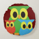 Gröna, Röda och Blå Ugglor Rund Kudde