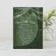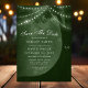 Meddela din speciella dag med vårt gröna trädsträngljus spara datum-kort. Denna charmiga design har ett rustikt träd prytt med strängljus och snidade initialer, vilket skapar en varm och inbjudande atmosfär. Perfekt för utomhus- och skogstematiska bröllop, detta unika spara datum kommer att fängsla dina gäster och sätta tonen för ditt bröllop.
