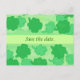 Målning av shamrock, fyrklöver, med Spara datum, och en platshållare för ytterligare text, tryckt på vykort. Bläddra bland matchande produktprov: