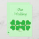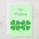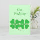 Målning av två gröna shamrocks, fyra lövklöver som klippas i guld, pricker, utskrivavet på bröllopinbjudningar. Skräddarsy lätt texten på mallen bildar.