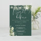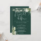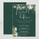 Eleganta strängljus, blomstergrönska, smaragdgrön repetitionsmiddagsinbjudan med era namn och detaljer om middagen i elegant text och era monograminitialer på baksidan. Designad av Thisisnotme©