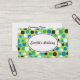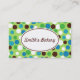 Festliga gröna, blå och bruna prickar pryder detta retroinspirerade visitkort. Anpassa detta visitkort för att passa dina behov. Designen är från originalkonst. Använd detta proffsiga visitkort för en butik, bageri, dagis, barnomsorg, ändringar, bageri, catering, florist, kosmetolog, möten, frisör, salong, spa, nagelsalong, heminredning, inredning, tillbehör, stickning, sömnad, mode, smycken, etc...