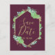 Gröna Sukkulenter Guld Ram Marsala Och Burgundy, eller valfri bakgrundsfärg (Välj genom att klicka på anpassa ytterligare) med falska guld foliedetaljer, vackra vattenfärgssukkulenter och en elegant guld ram Bröllop Spara Datum Postkort Med trendig handskriven script font! ~ Kolla min butik för att se hela bröllopssamlingen med denna design!