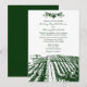 Gröna vintage toskanska vinergård bröllopsinbjudningar - matcha svarsbrevskorten och mer nedan på denna sida. Varje inbjudan har en vintage vingårdslandskap längst ner med vindruvor, vinrankor och blad längst upp i en djupgrön nyans. Denna design finns också i olika andra färger som vinrött, mörklila och mer. Dessa bröllopsinbjudningar är tryckta på högkvalitativt grundkort; men du kan uppgradera till finare typer till höger ovan. Varje inbjudan kommer med ett anpassat vitt kuvert. Se matchande bröllopssvarskort nedan för att komplettera sviten.