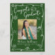 Var stolt, gläd dig och visa upp denna milstolpe för din favoritstudent! Skicka ut detta udda, fantasifulla, enkla, moderna, personliga 4-foto-kollage-kort för en händelse att minnas. Rolig, vit handskriven typsnitt och handritade examensikon-skisser doodlar, tillsammans med ditt anpassade foto, överlagrar en jägaregrön bakgrund. På baksidan finns 3 ytterligare foton, gröna handritade doodlar och din personliga text över vit. Anpassa den anpassade texten med din students foto, namn, skola och klassår på framsidan. Lägg till 3 fler foton som du väljer, din personliga anteckning, nästa skola hon går på osv. på baksidan. Matchande inbjudningar, tackkort, toppar för studentmössor, servetter, tallrikar och andra examenspresenter finns också i denna trendiga och stilfulla kollektion. Garanterat att tillföra stilfullt kul till deras speciella tillfälle!
