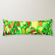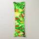 Grönaktiga streck över rött med duggregn kroppskudde