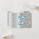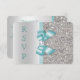 Personliga formella RSVP-platta kort / inbjudningar för alla evenemang - bröllop, baby shower, födelsedagsfest, sweet 16, Quinceanera-firande, förlovningar, brud shower etc. Eleganta anpassade silver- och tealfärgade dubbelsidiga svars kort med vacker glittrig tryckt glitter, rhinstenar, paljetter mönster, söta blanka tryckta vektorbågar och band och snygga, stilrena tryckta bild diamanter bling juveler. Dessa klassiska glamourösa, moderna svars kort är dekorerade på båda sidor. Vackra, snygga, trendiga, moderna dubbelsidiga kort med glitter och glamour. Jag har matchande produkter i min butik. Text, teckensnitt och färger på teckensnitt är alla anpassningsbara för att möta dina behov