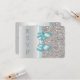 Personliga formella RSVP-platta kort / inbjudningar för alla evenemang - bröllop, baby shower, födelsedagsfest, sweet 16, Quinceanera-firande, förlovning, brud shower etc. Eleganta anpassade silver- och tealfärgade dubbelsidiga svars kort med vacker glänsande tryckt glitter, rhinstenar, paljetter mönster, söta glänsande tryckta vektorsnören och band och snygga, stilrena tryckta bild diamanter bling juveler. Dessa klassiska glamourösa, fashionabla rsvps är dekorerade på båda sidor. Vackra, chic, trendiga, moderna dubbelsidiga kort med glitter och glamour. Jag har matchande produkter i min butik. Text, teckensnitt och färger på teckensnitt är alla anpassningsbara för att möta dina behov