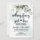 Bröllopsdesign med akvarellgrönska, rosafärgad bakgrund och modern kalligrafi. Grafiken visar "inget fancy, bara kärlek" med ett hjärta i mitten. För att få tillgång till avancerade redigeringsverktyg, gå till “Personalisera” och klicka sedan på länken "klicka för att anpassa ytterligare".