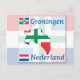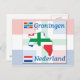Flagga och karta-kort för provinsen Groningen i Nederländerna. Ska du visa var du kommer från kärlek? Eller säg hej från din helgdag, så är det här kortet perfekt för dig. Kan användas för brevväxling eller för samlare av flagga och karta-kort.