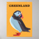 Grönland Puffin vintage resor poster. Besök Grönlands helgdag poster.