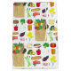 Designen har en originell illustration med markörer av matvaror, inklusive frukter, grönsaker, blommor, ostar, bröd, fisk, mjölk och hushållspapper. Precis som en resa till grönsakshallen, bondens marknad eller mataffären! Perfekt för din matlagningsentusiast.